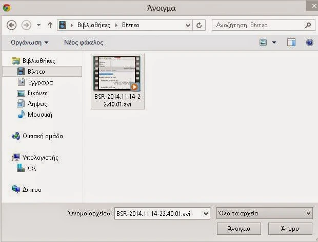 Εδω μπορουμε να συρουμε τα βιντεο μας απο την επιφανεια εργασιας μας και να τα ριξουμε μεσα στον browser ή πολυ απλα κανουμε κλικ και ανοιγει η αρχειοθηκη του υπολογιστη μας. Τωρα επιλεγουμε το βιντεο μας και παταμε ανοιγμα